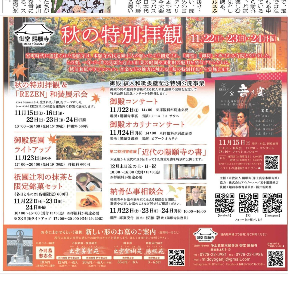 11月22より開催の「2025年秋の特別拝観」が掲載